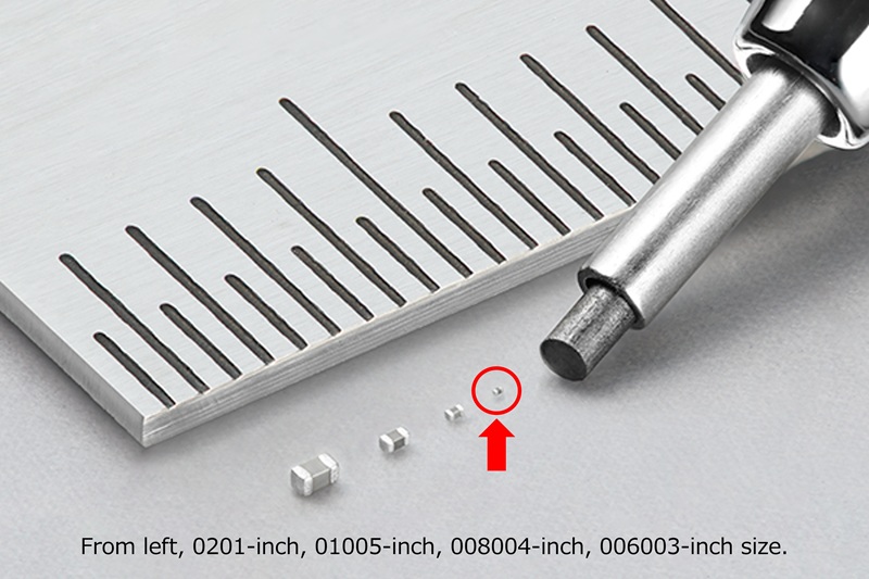 近年來,由于電子設(shè)備的高性能化和小型化趨勢不斷推進(jìn),電子元件的配備數(shù)量不斷增加,可用于安裝電子元件的空間越來越小。配備在各類電子設(shè)備中的多層陶瓷電容器的數(shù)量也隨著電子設(shè)備的高功能化而增加,目前在新款智能手機(jī)中使用的電容器可多達(dá)1,000個左右。在此背景下,人們越來越需要能夠在有限的安裝空間內(nèi)實現(xiàn)高密度元件安裝的超小型產(chǎn)品。