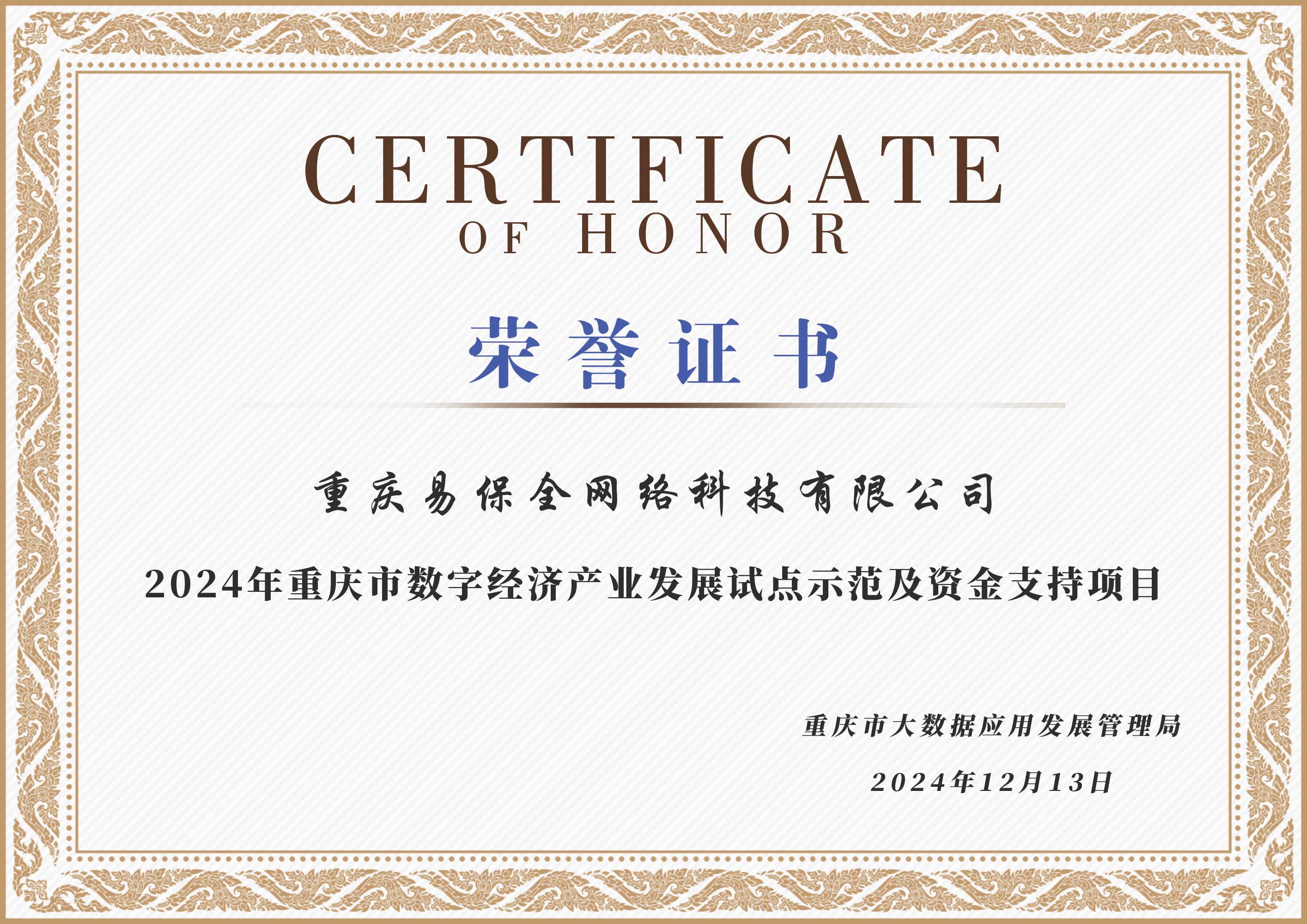 2024年入選重慶市數(shù)字經(jīng)濟(jì)產(chǎn)業(yè)發(fā)