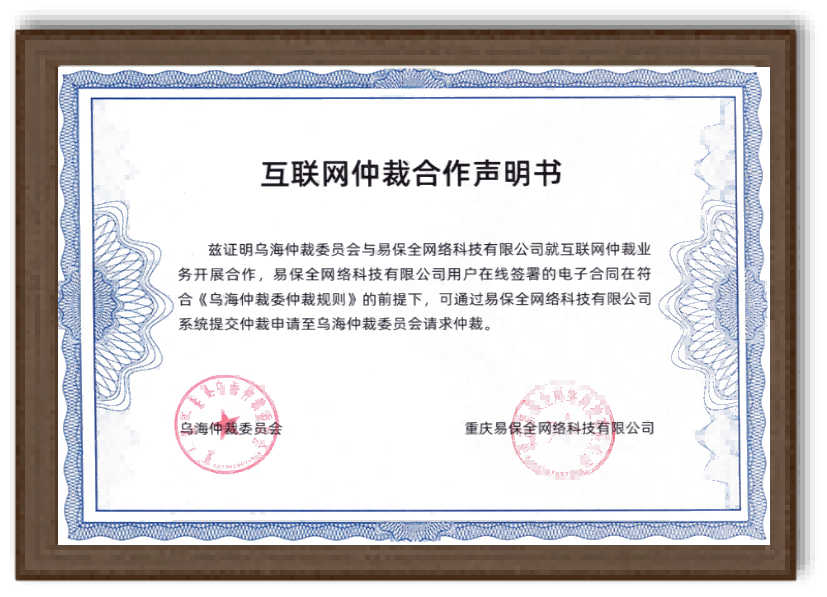 烏海仲裁委員會(huì)合作聲明書