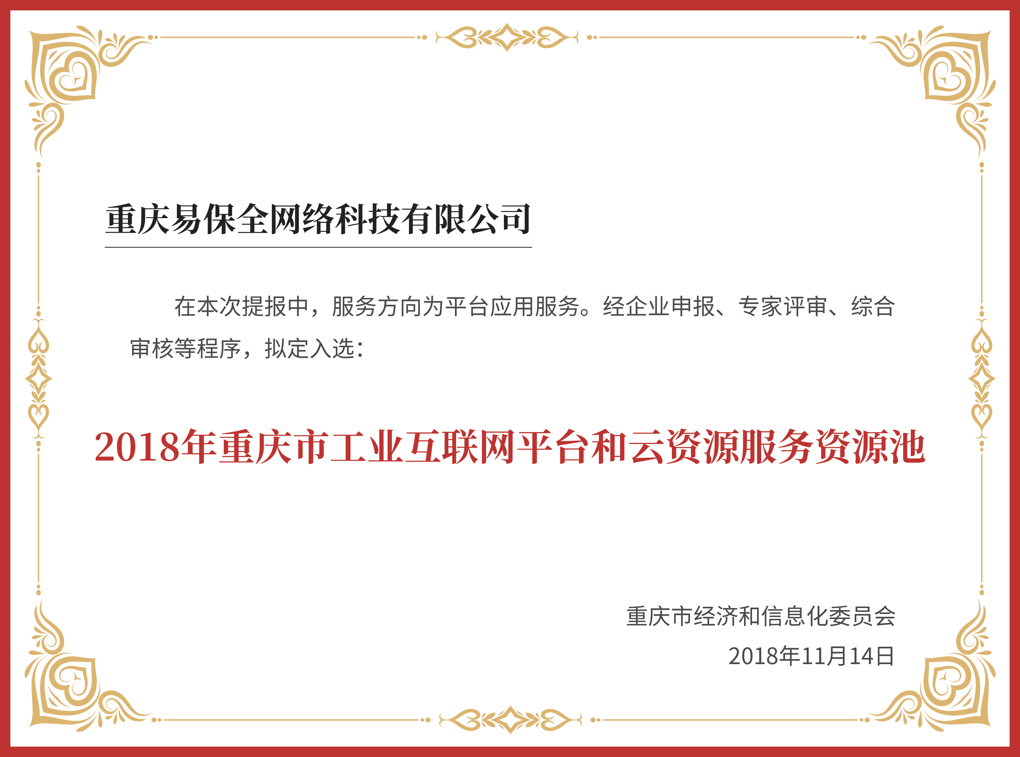2018年入選重慶市工業(yè)互聯(lián)網(wǎng)