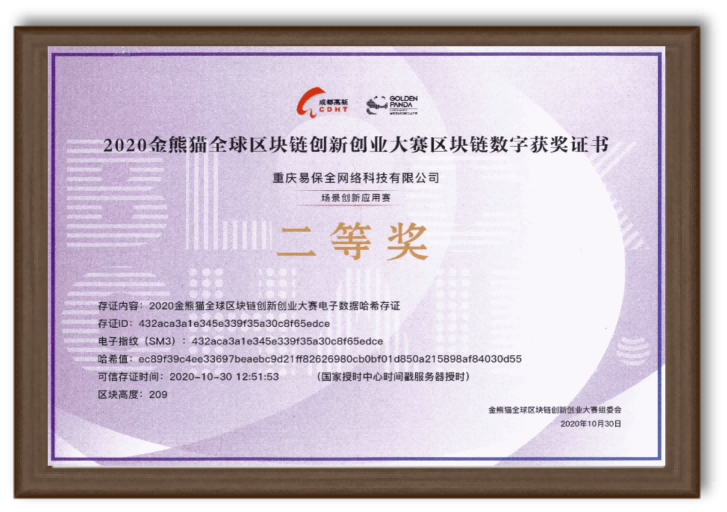 2020金熊貓全球區(qū)塊鏈創(chuàng)新創(chuàng)業(yè)大賽二等獎(jiǎng)