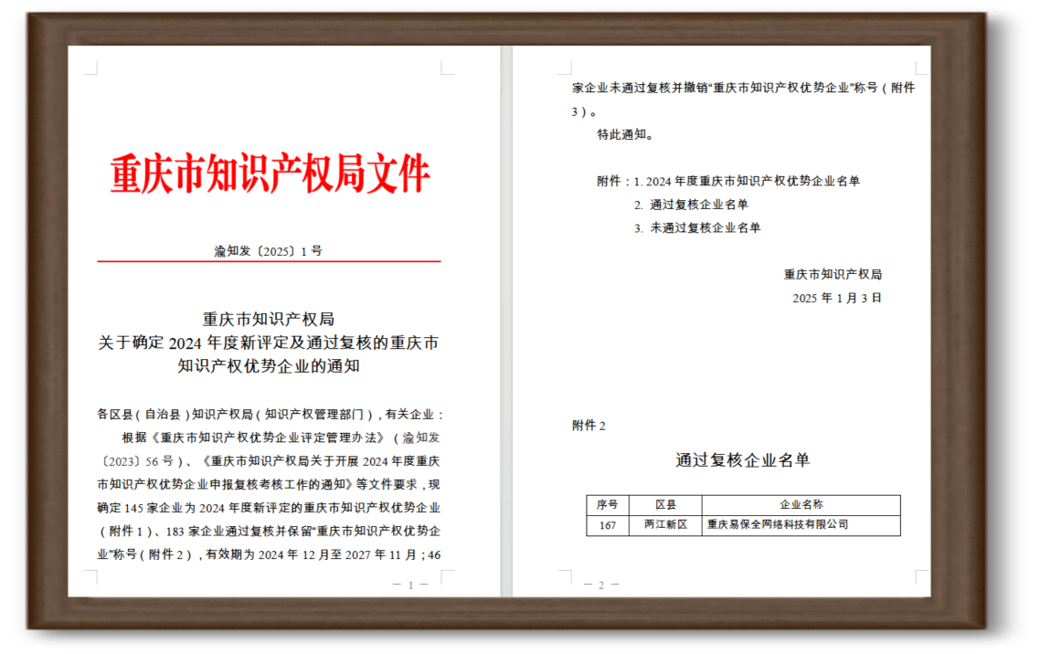 通過重慶市知識(shí)產(chǎn)權(quán)優(yōu)勢(shì)企業(yè)2024年度復(fù)審
