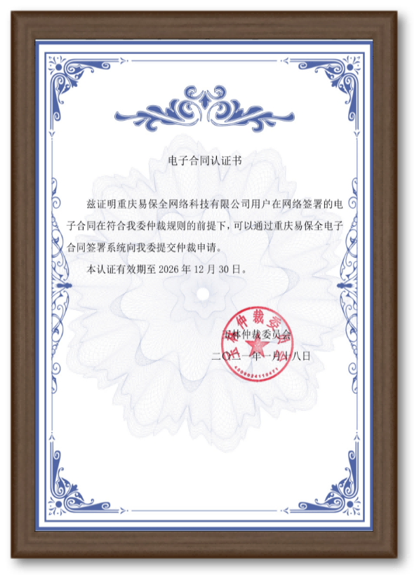玉林仲裁委員會(huì)認(rèn)證書