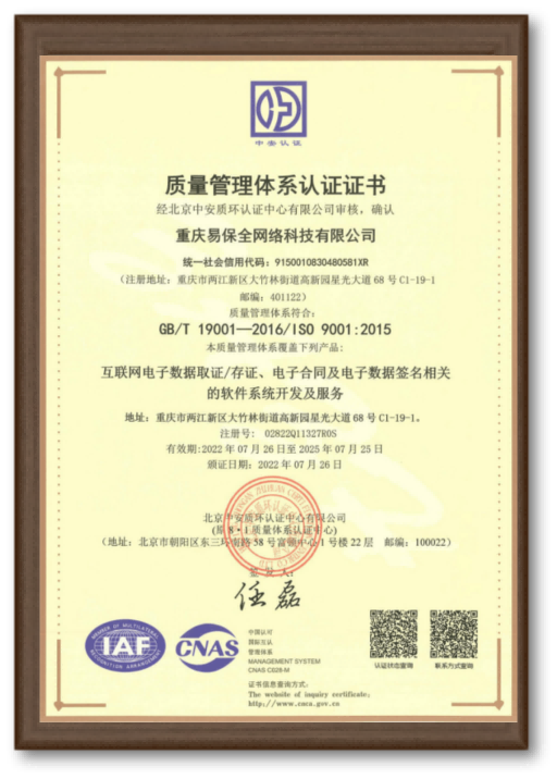 ISO9001認(rèn)證證書