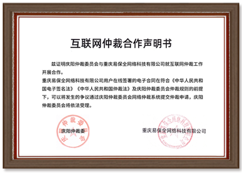 慶陽仲裁委合作申明書