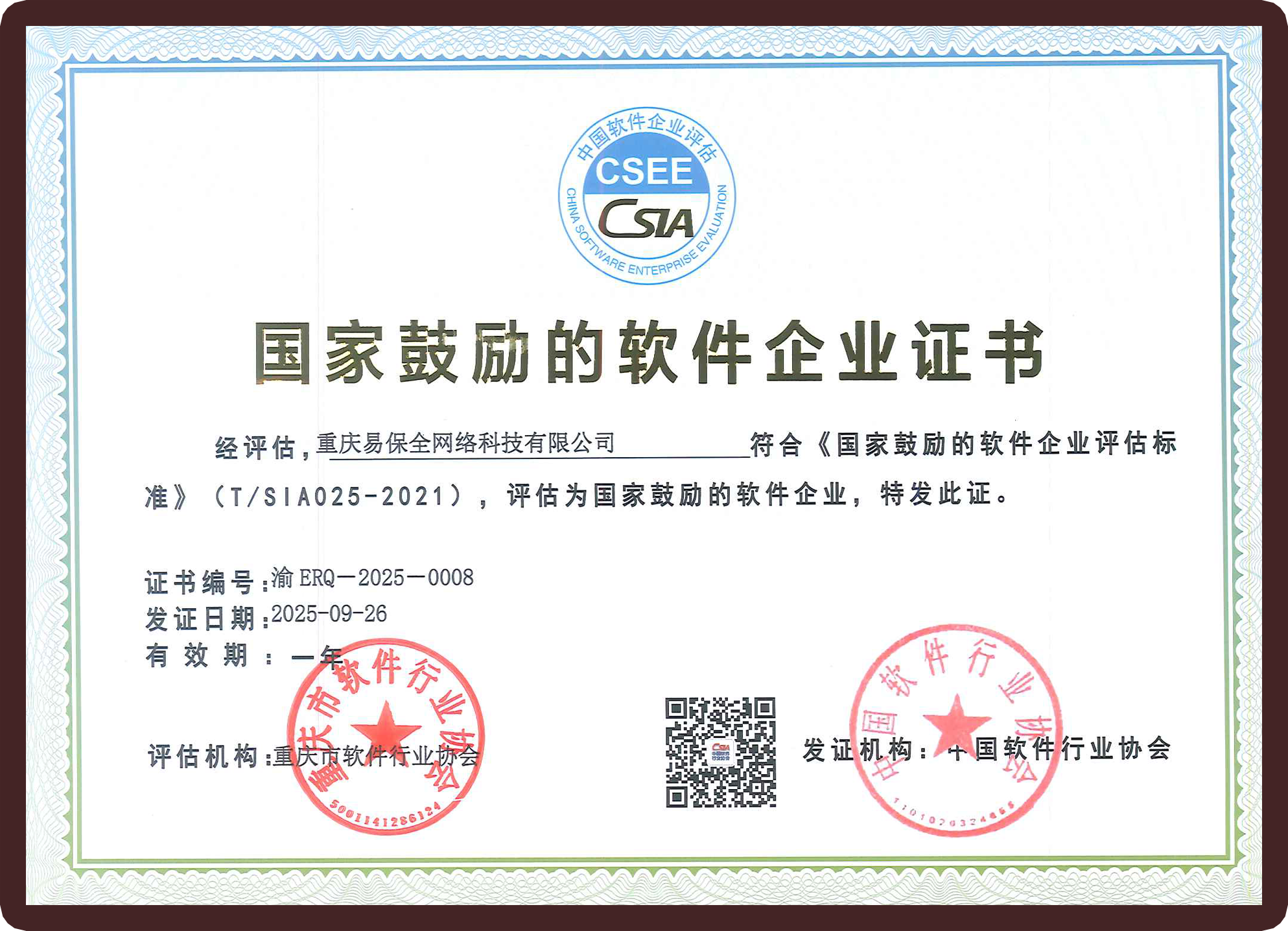 2024年獲重慶市軟件行業(yè)協(xié)會(huì)會(huì)員