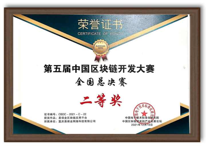 2021年獲第五屆中國區(qū)塊鏈開發(fā)大賽