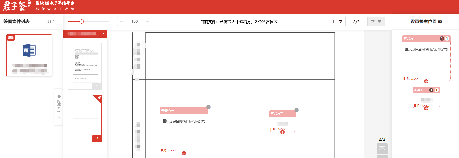 君子簽在線電子合同簽約平臺,在電子合同簽署完成后,對在線簽署的合同數(shù)據(jù)進行保全,區(qū)塊鏈結合CA技術深度應用防篡改。對簽約后的正式合同、簽約信息、合同附件、全證據(jù)鏈等進行數(shù)據(jù)固化存證