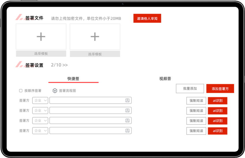 當出現(xiàn)多個簽約人時,可靈活按業(yè)務和企業(yè)流程按設置順序簽約